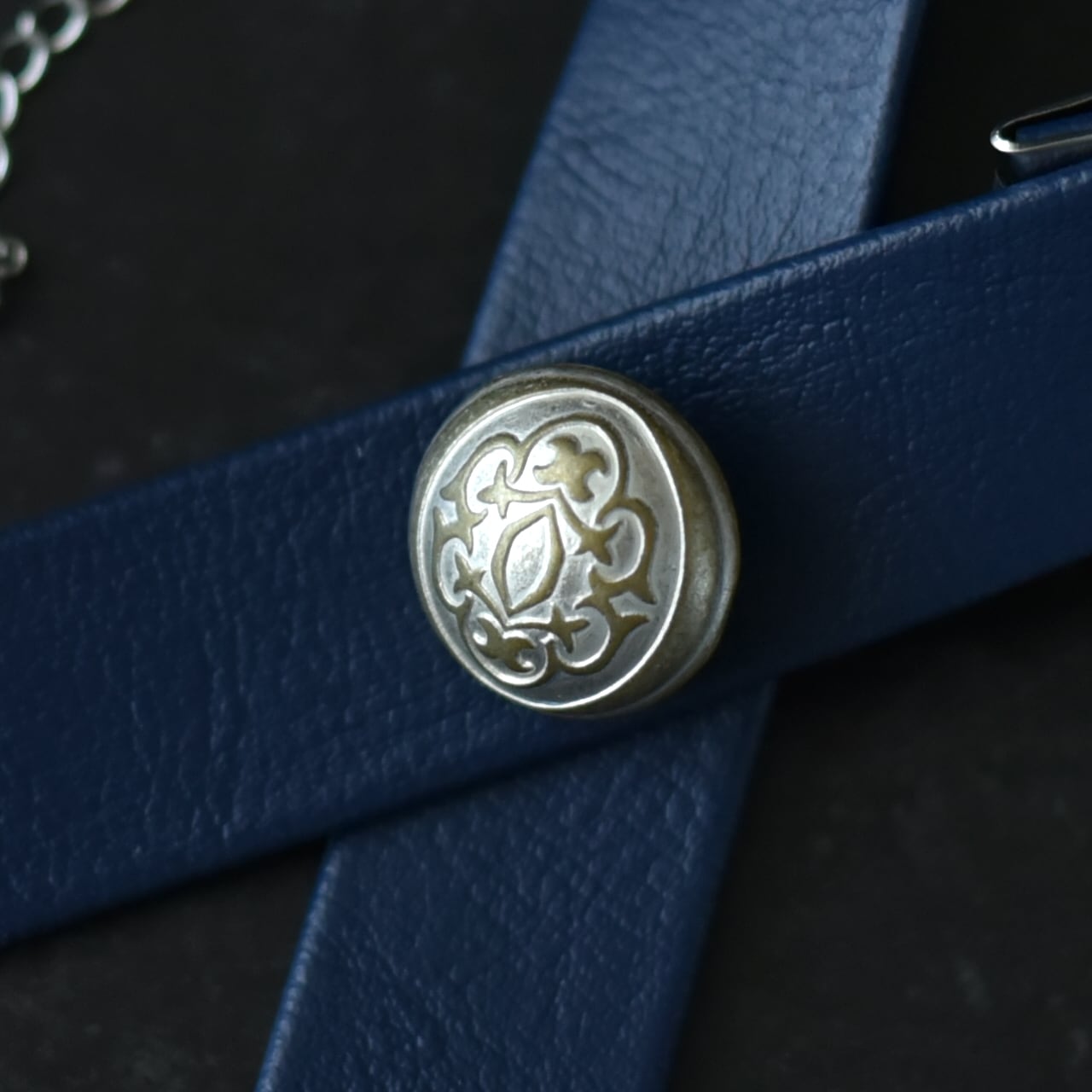 英雄の紋章|紋章ボタンのクロスタイチョーカー/ネックレス メンズ ユニセックス ネイビー シルバー クラシック エレガント モード