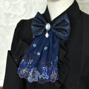 …dreams come true…|青薔薇ジャガード生地のブローチ付きジャボタイ2wayリボン/ゴシック ロリータ ヘアアクセサリー ブローチ バレッタ 髪飾り ネイビー