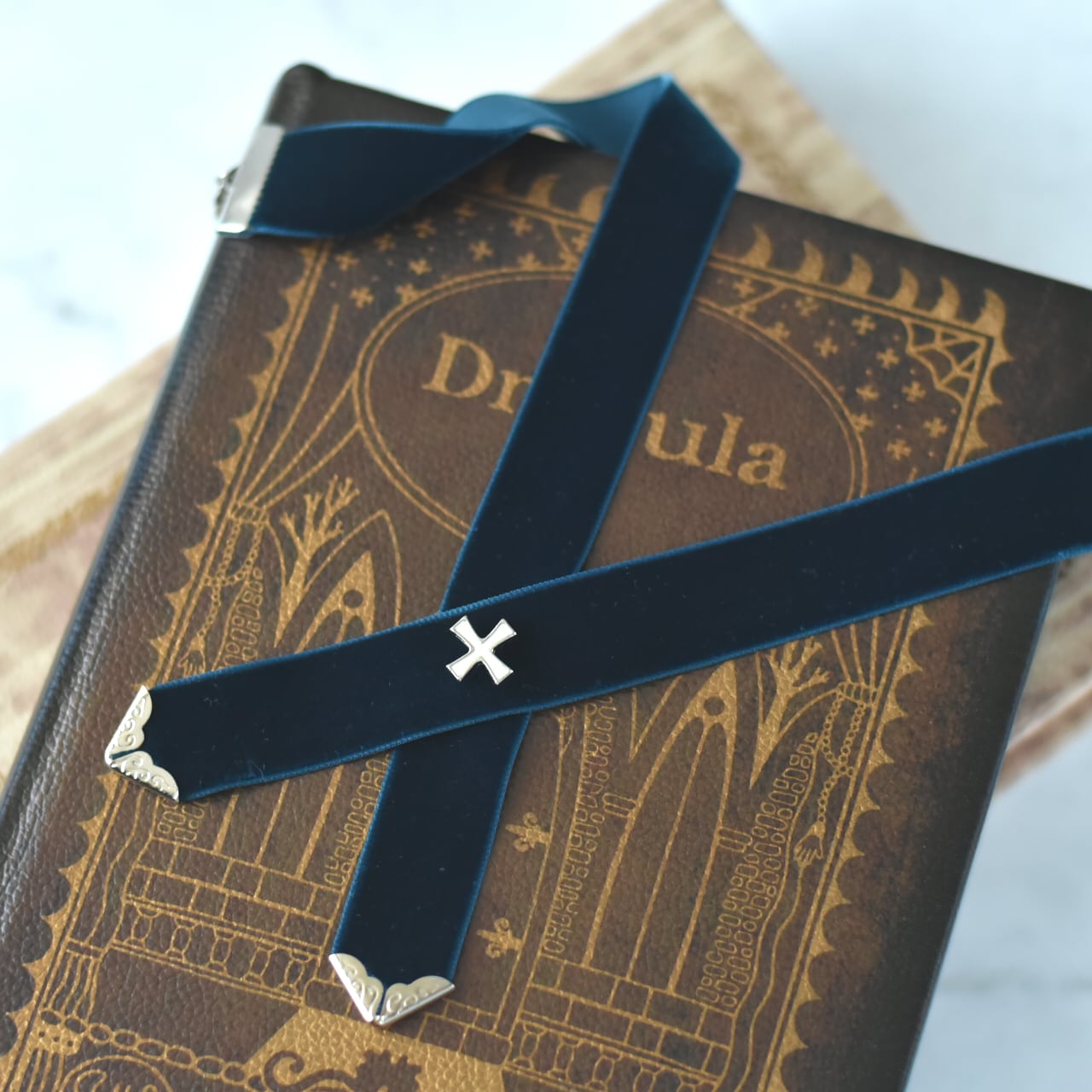 深紺のベルベットに銀の十字架が光るクロスタイ。