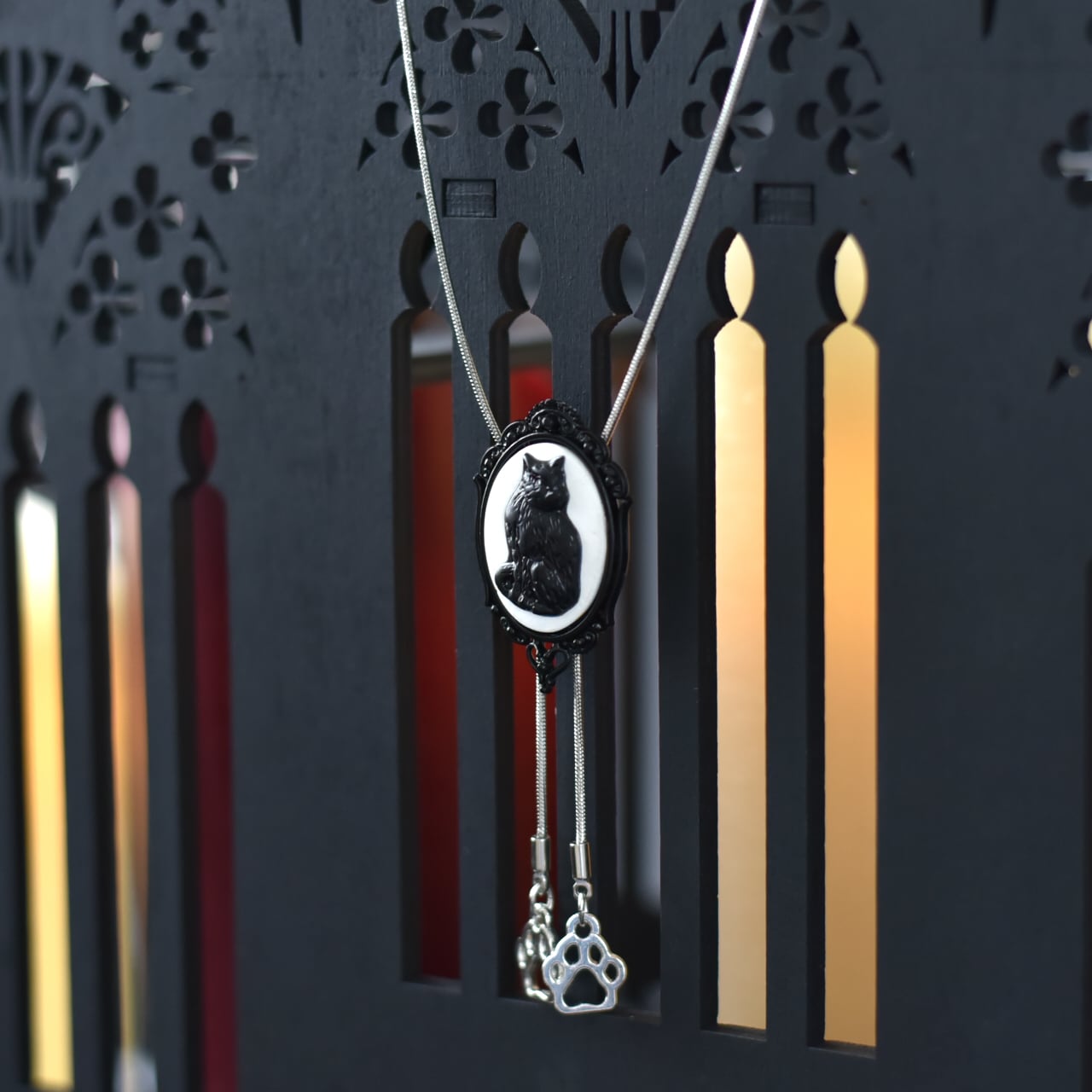 栄誉と代償|語られざる契約を結ぶ黒猫のループタイネックレス/数量限定 ゴシック 芸術 絵画 契約 黒猫 モノトーン 儀式 神秘