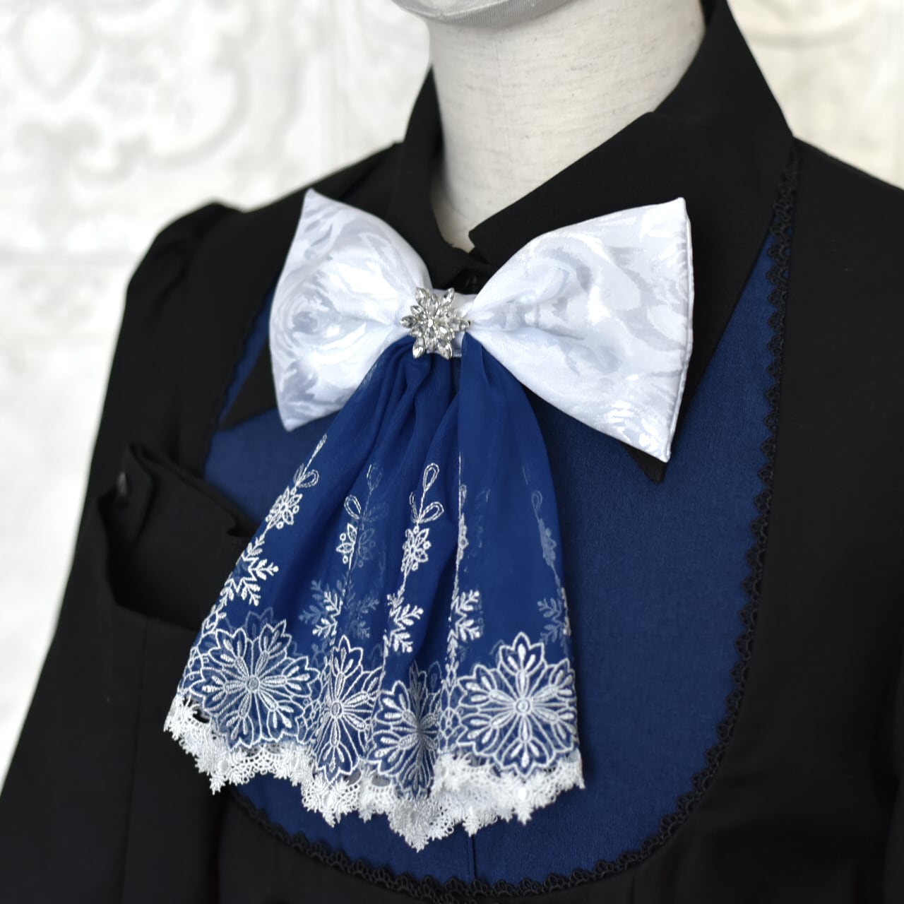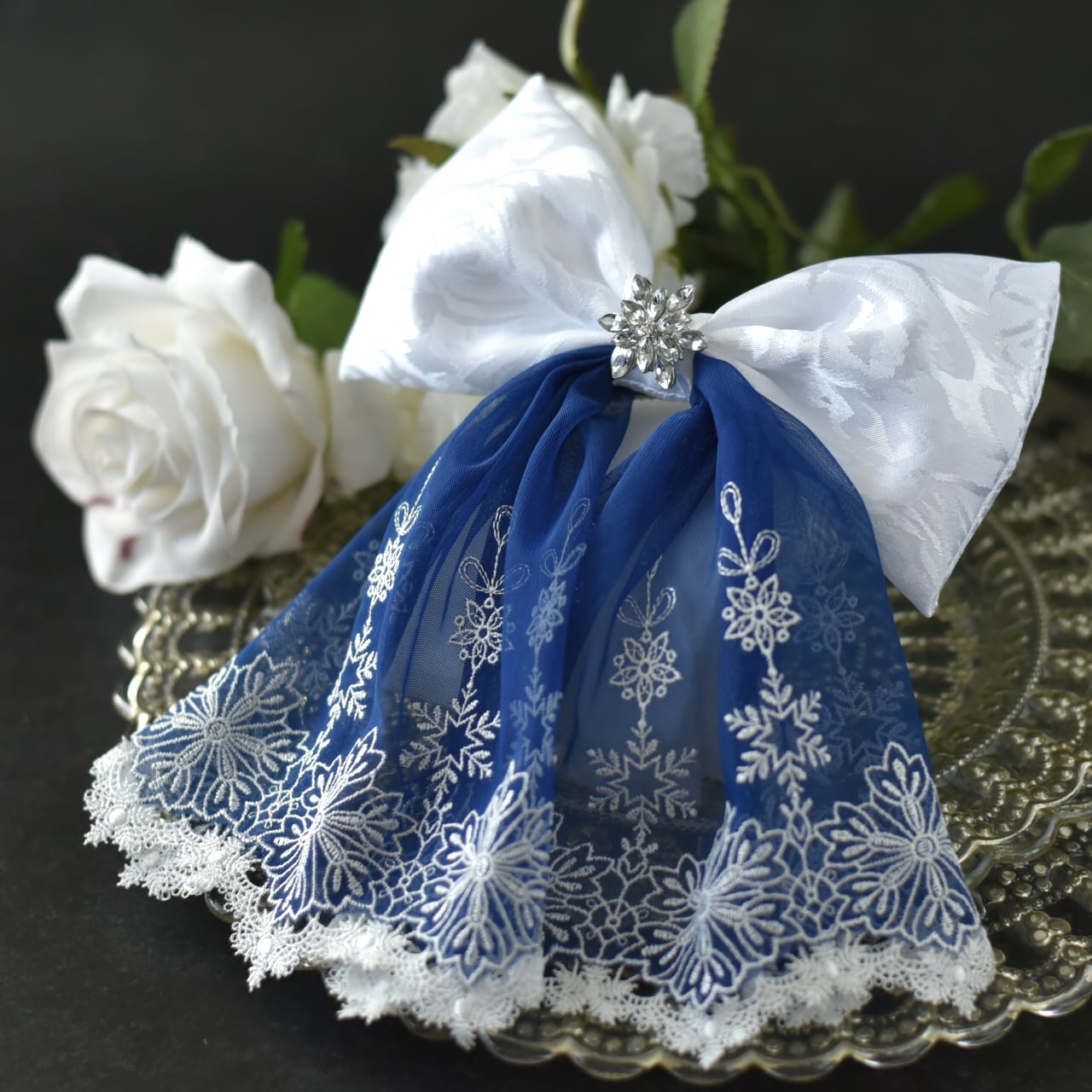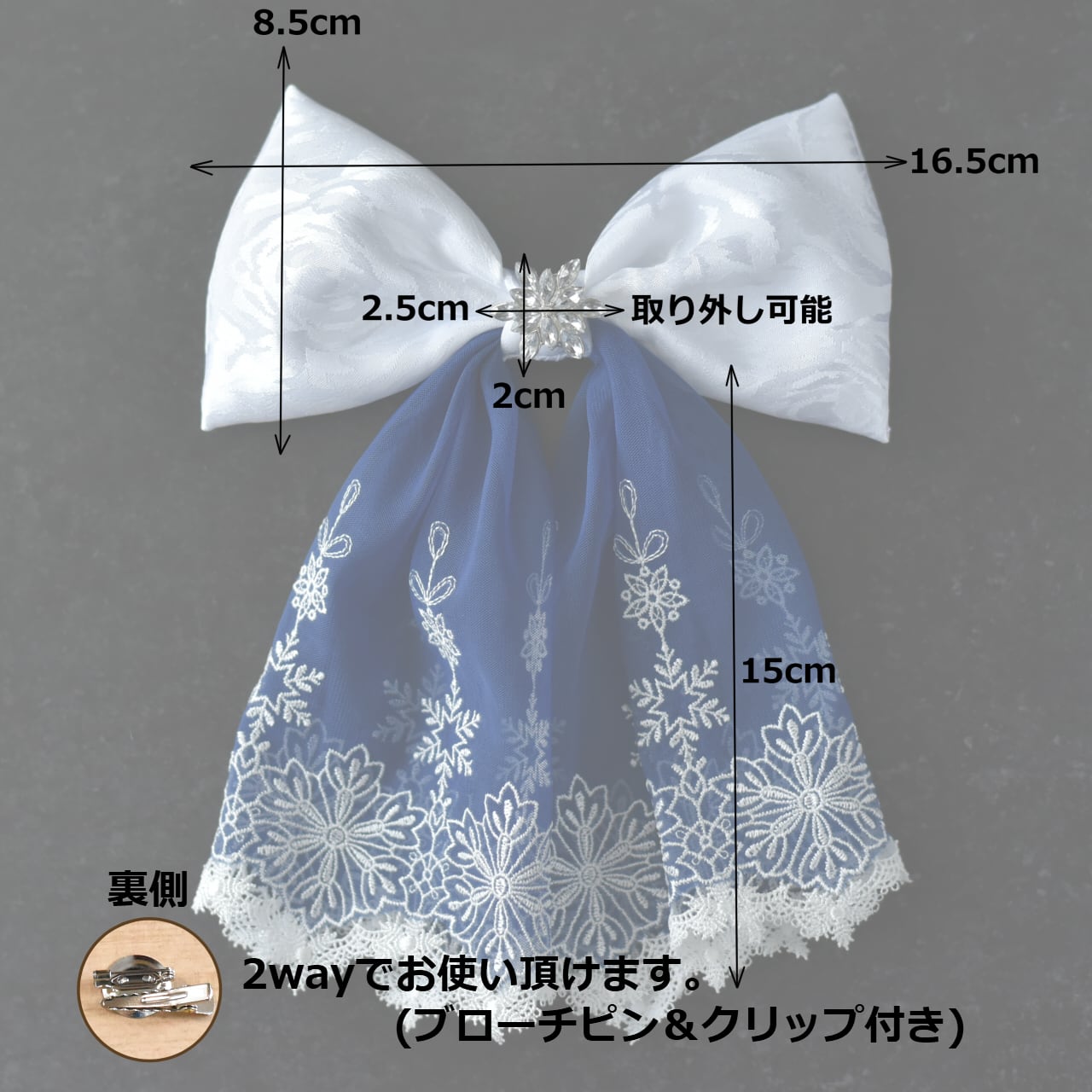 六花献上前夜譚|雪の結晶が美しい白き薔薇と刺繍のジャボタイ2wayリボン/スノーフレーク ヘアーリボン デカリボン ヘアーアクセ