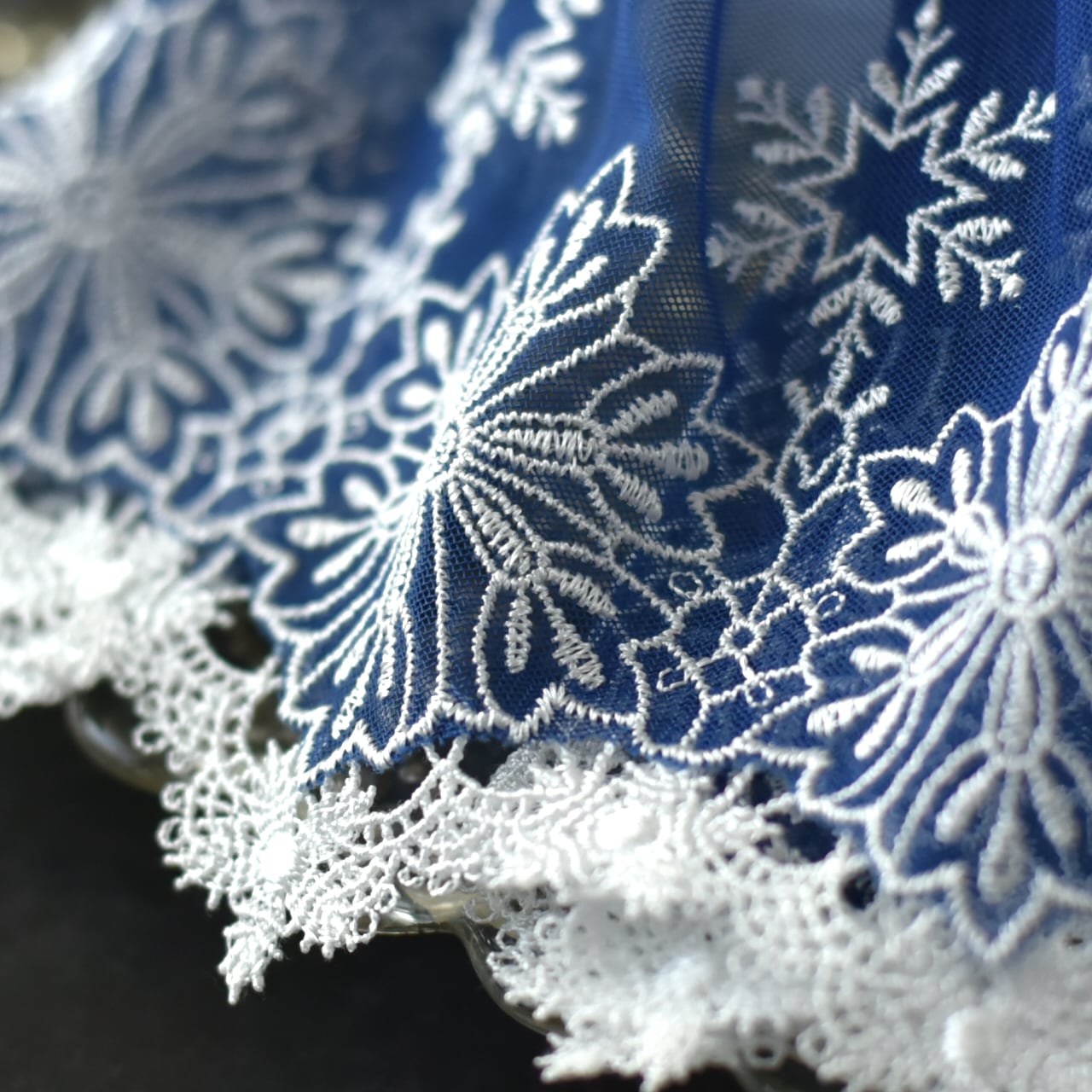 濃いネイビー×ホワイトのスノーフレーク刺繍が映え