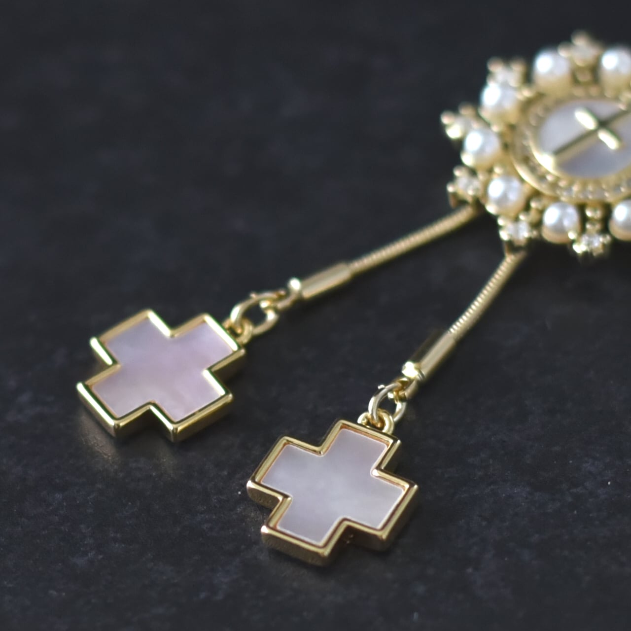 その周囲を囲むように小粒のパールと